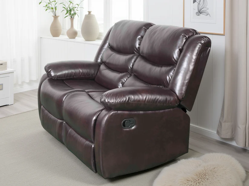 The Conrad Manual Recliner Collection offers ultimate comfort and contemporary style. Upholstered in a Black or Brown bonded leather. Its plush, padded design provides exceptional support, perfect for relaxing after a long day.